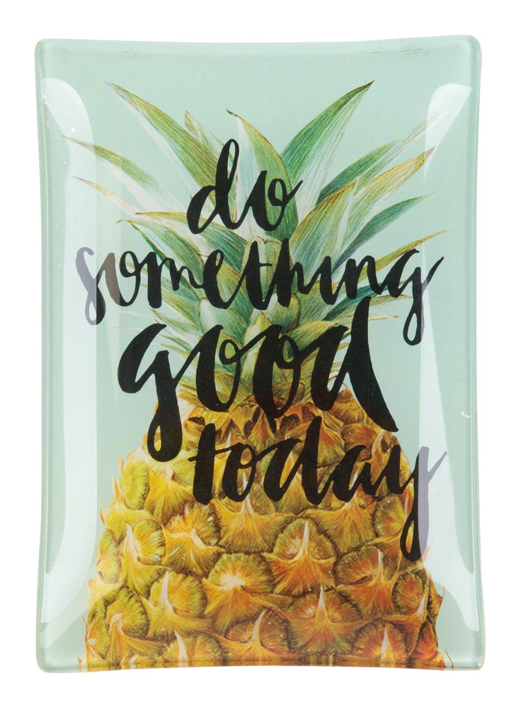 Glasteller mit Ananas Motiv und der Aufschrift „do something good today“ mit den Abmessungen 10 x 0.8 x 14.2 cm aus Glas gefertigt mit einem Gewicht von 0.11 kg.